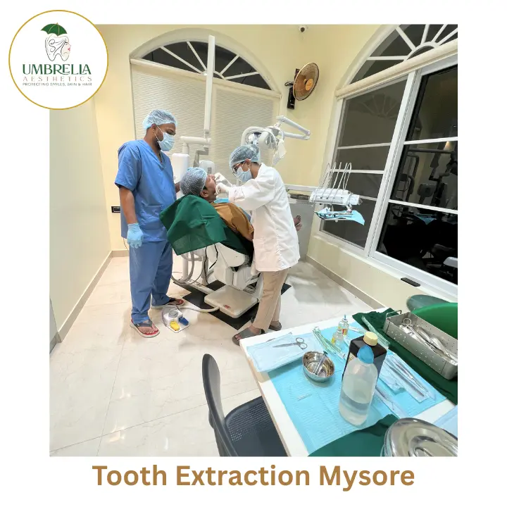 At Umbrella Aesthetics Jayalakshmipuram, tooth extraction in Mysore is performed using precise anesthesia and